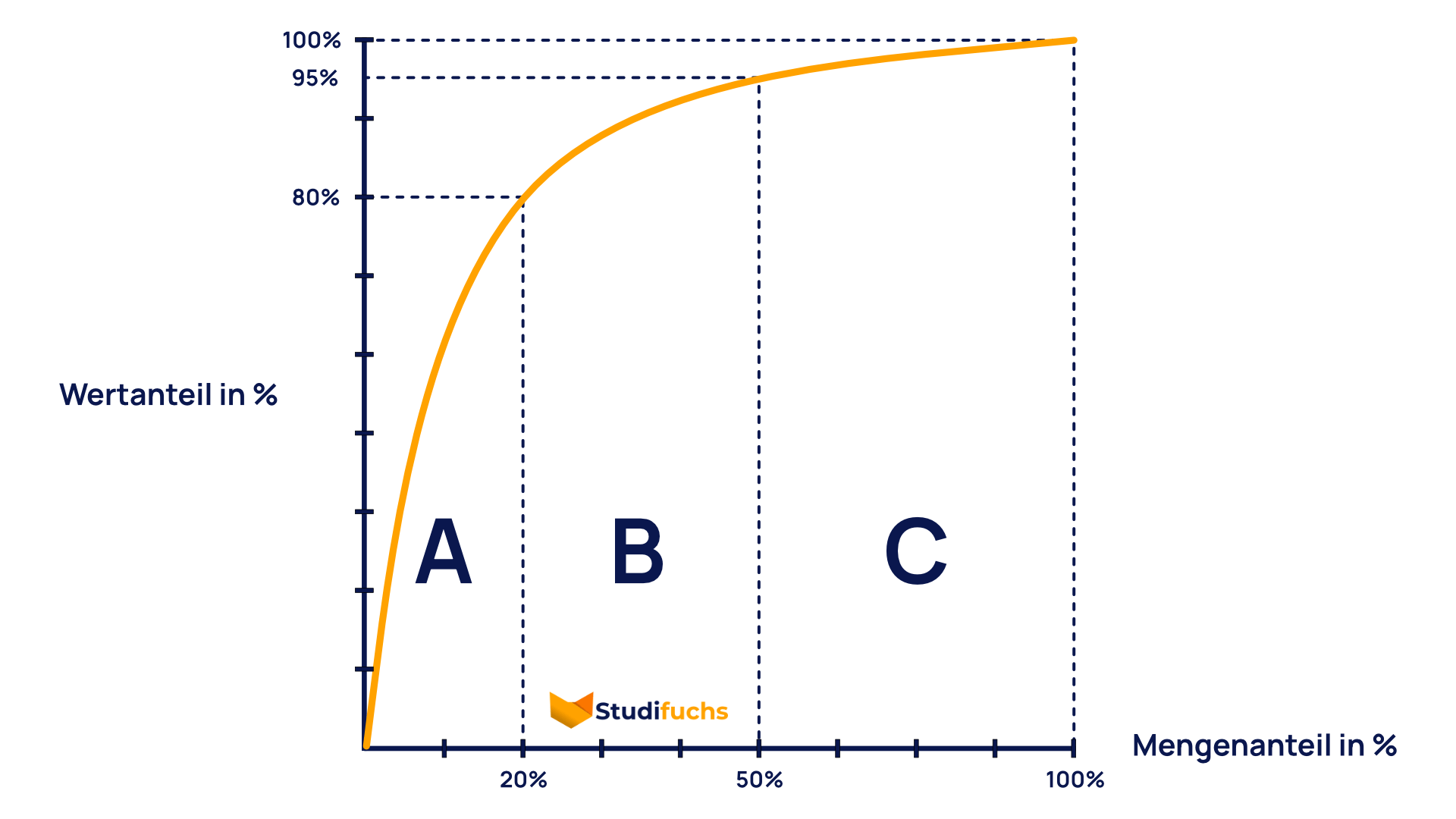 Dabei beruht die ABC-Analyse auf den Annahmen Pareto's nach dessen Regel ein relativ kleiner Teil (20%) der Menge einen großen Teil (80%) der Wirkung erzielt. Übertragen auf die erweiterten Anwendungsbereiche der ABC-Analyse bedeutet dies beispielsweise, dass die A-Gruppe 20% der Produkte eines Unternehmens enthält, die wiederum 80% des Umsatzes erwirtschaften oder auf 20% der Kunden 80% des Umsatzes entfallen.